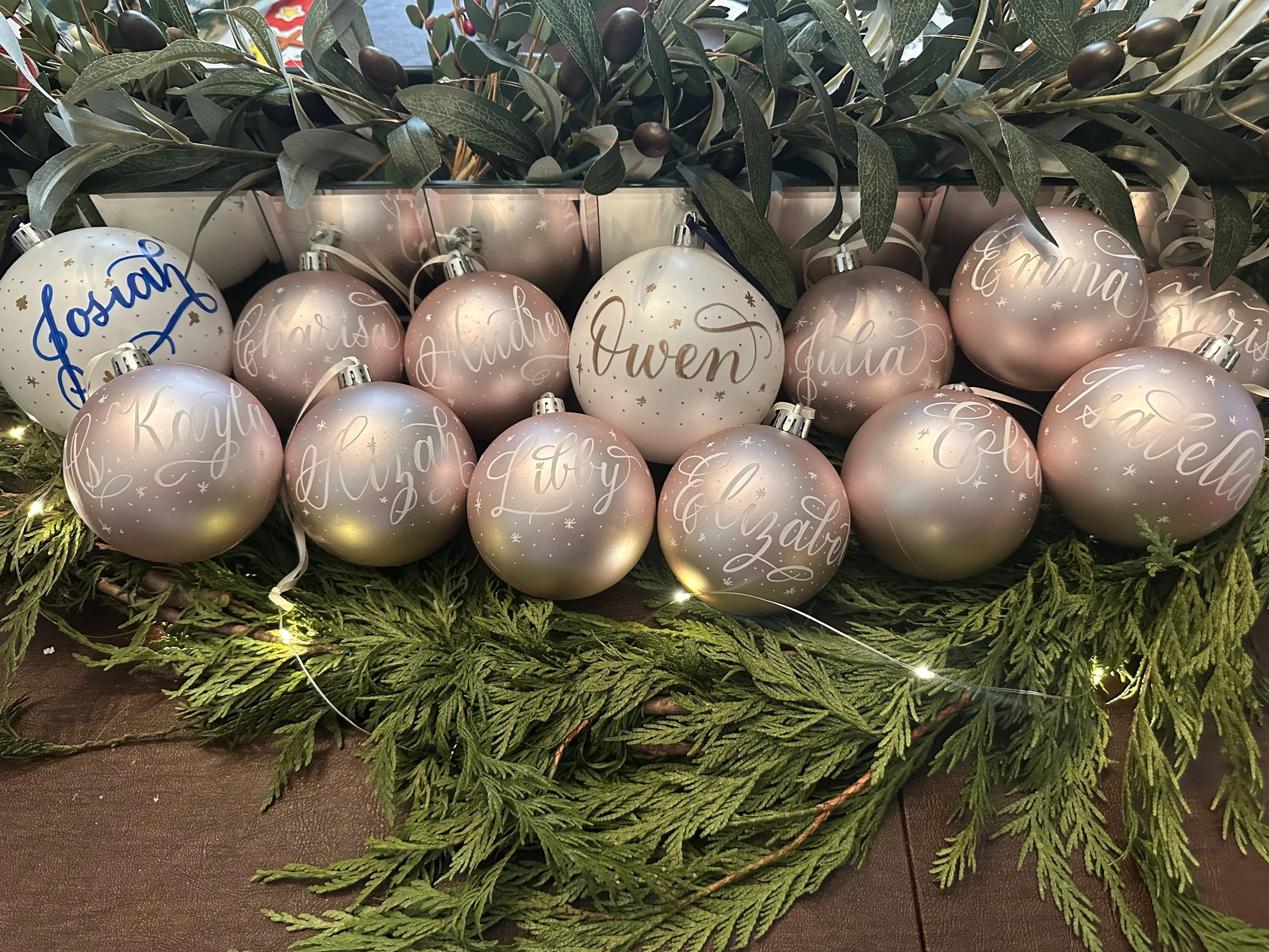 Almost all gifts can be personalized! Holiday ornaments, personalized heat foil luggage tags, and custom bouquet ribbon wraps, just to name a few!